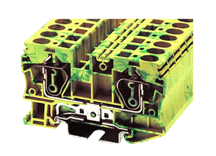 Пружинная проходная клемма заземления на Дин рейку. UL: 24~8 AWG, IEC: 0.5~6.0 мм.кв, Размеры: 8х42х69.5 мм, Материал: полиамид. Длина зачистки проводов: 12 мм. Цвет: желто-зеленый. Функционально совместимы с клемма Wago 2004-1207