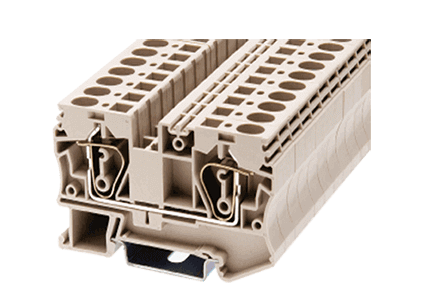 Пружинная проходная клемма на Дин рейку. UL: 600В, 35А, 24~8 AWG, IEC: 800B, 41A, 0.5~6.0 мм.кв, Размеры: 8х42х69.5 мм, Материал: полиамид. Длина зачистки проводов: 12 мм. Цвет: бежевый. Функционально совместимы с клемма Wago 2004-1201