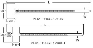 Маркировочные кабельные пластиковые стяжки с биркой, AVC ALM-110S (100шт)