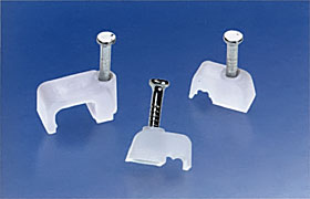Держатель плоского кабеля, клипса с гвоздями. Материал: полипропилен. A = 9.2 mm, H = 6 mm, W = 9 mm . Гвоздь 2,5х18