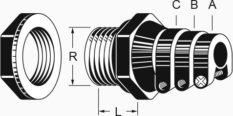 Пластиковый проходной фланец, установочная резьба PF1/2", длина резьбы 11мм, Для кабеля диаметром 5, 7 и 9 мм. Материал: ПВХ. Цвет: черный Аналог KSS KB-1
