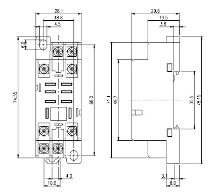 Колодка переходник 78.15х28.1х29.6; для реле типа: SCL; SCLA; установка на DIN-рельс; винтовое подключение проводов
