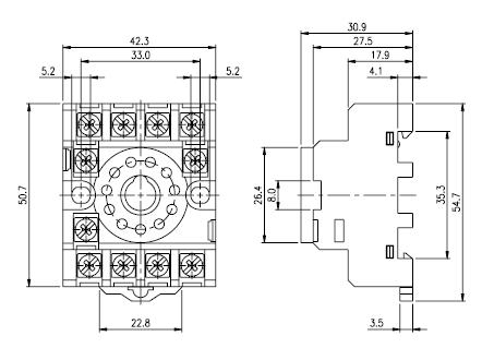 Колодка переходник 54.7х42.3х30.9; для реле типа: UF3; 703C (11-контактов); установка на DIN-рельс; винтовое подключение проводов