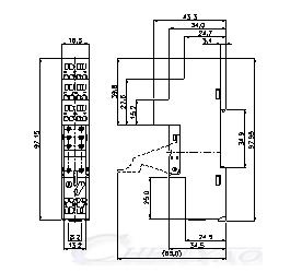 Колодка переходник/ шаг 5,0. 97.95x16.3x43.3; для реле типа: 793, 845, 881, 888, 894, 507; установка на DIN-рельс; подпружиненное подключение проводов;
