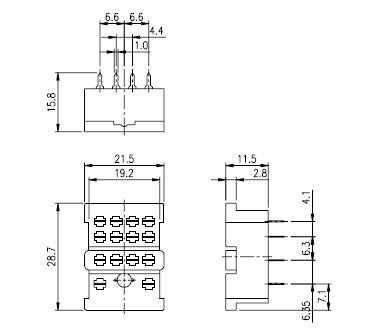 Колодка в плату, переходник 28.7x21.5x11.5; для реле типа: SCLD, 305-4, 114А4;