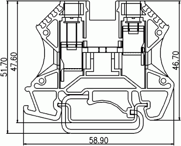 Клемма проходная винтовая на Дин рейку. UL: 600В, 45A, 20~8 AWG IEC: 500B, 41A, 0.5~6.0 мм.кв Размеры: 8х47х59 мм Материал: полиамид. Длина зачистки проводов: 12-14 мм. Цвет: синий