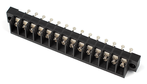 Одноуровневый баръерный клеммный блок для монтажа на панель с выводами под пайку. Количество контактов: 14. Материал: PA66, UL 94 V-0; Т = -40...+105С; Шаг: 6.35 мм 300В, 15А сечение 0,5 ~1,5 мм.кв
