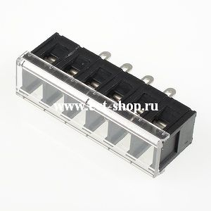 Одноуровневый баръерный клеммный блок для монтажа на панель. Выводы под пайку. Количество контактов: 4. Материал: Полибутилен-терафталат, UL 94 V-0; Т = -40...+130С; Шаг: 7.62 мм 300В, 15А сечение 0,5 ~2,5 мм.кв