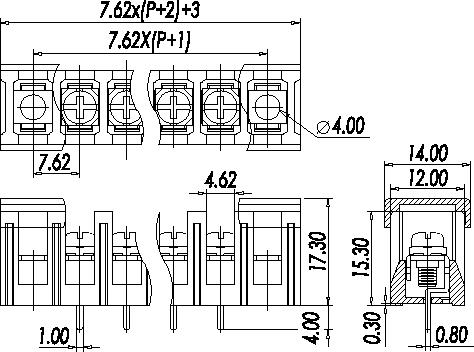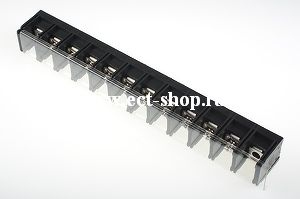 Одноуровневый баръерный клеммный блок для монтажа на печатную плату. Количество контактов: 10. Материал: Полибутилен-терафталат, UL 94 V-0; Т = -40...+130С; Шаг: 7.62 мм 300В, 15А сечение 0,5 ~2,5 мм.кв