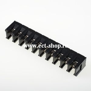 Одноуровневый баръерный клеммный блок для монтажа на печатную плату. Количество контактов: 10. Материал: Полибутилен-терафталат, UL 94 V-0; Т = -40...+130С; Шаг: 7.62 мм 300В, 15А сечение 0,5 ~2,5 мм.кв