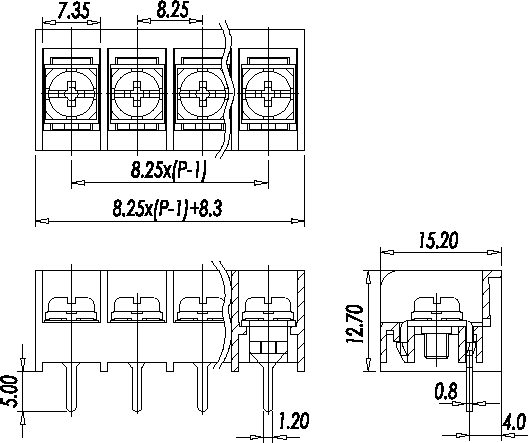 Одноуровневый баръерный клеммный блок для монтажа на печатную плату. Количество контактов: 10. Материал: Полиамид РА66, UL 94 V-0; Т = -40...+105С; Шаг: 8.25 мм 300В, 10А сечение 0,5 ~2,5 мм.кв