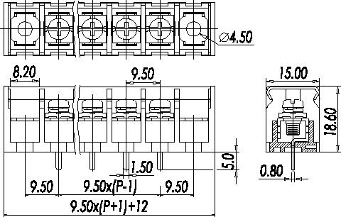 Одноуровневый баръерный клеммный блок для монтажа на печатную плату. Количество контактов: 4. Материал: Полибутилен-терафталат, UL 94 V-0; Т = -40...+130С; Шаг: 9.5 мм 300В, 20А сечение 0,5 ~2,5 мм.кв