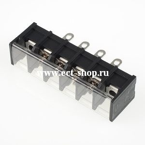 Одноуровневый баръерный клеммный блок для монтажа на панель. Выводы под пайку. Количество контактов: 4. Материал: Полибутилен-терафталат, UL 94 V-0; Т = -40...+130С; Шаг: 10.0 мм 300В, 25А сечение 0,5 ~2,5 мм.кв
