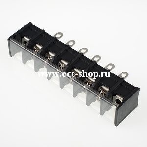 Одноуровневый баръерный клеммный блок для монтажа на панель. Выводы под пайку. Количество контактов: 6. Материал: Полибутилен-терафталат, UL 94 V-0; Т = -40...+130С; Шаг: 10.0 мм 300В, 25А сечение 0,5 ~2,5 мм.кв