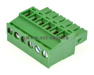 шаг: 3.50мм, пров: 1.50мм.кв, 300V, 8A, 6 конт., разъемн. розетка каб.вертик. кл. 180 град. к пров., h = 19.00мм