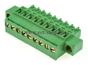 шаг: 3.50мм, пров: 1.50мм.кв, 300V, 8A, 9 конт., разъемн. розетка каб.вертик. кл. со стор. пров. с винт. фиксат., h = 19.00мм
