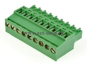 шаг: 3.81мм, пров: 1.50мм.кв, 300V, 8A, 9 конт., разъемн. розетка каб.вертик. кл. со стор. пров., h = 19.00мм
