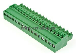 шаг: 3.81мм, пров: 1.50мм.кв, 300V, 8A, 16 конт., разъемн. розетка каб.вертик. кл. со стор. пров., h = 19.00мм