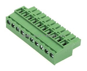 шаг: 3.81мм, пров: 1.50мм.кв, 300V, 8A, 10 конт., разъемн. розетка каб.вертик. кл. 180 град. к пров., h = 19.00мм