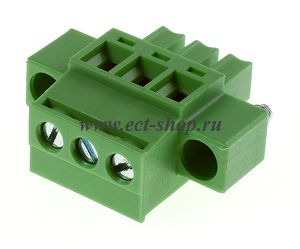 шаг: 3.81мм, пров: 1.50мм.кв, 300V, 8A, 3 конт., разъемн. розетка каб.вертик. кл. 180 град. к пров. с винт. фиксат., h = 19.00мм