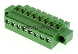 шаг: 3.81мм, пров: 1.50мм.кв, 300V, 8A, 8 конт., разъемн. розетка каб.вертик. кл. 180 град. к пров. с винт. фиксат., h = 19.00мм