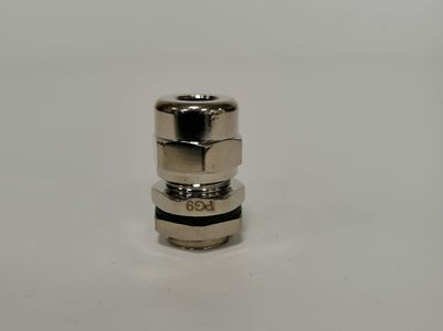 Кабельный ввод под торговой маркой ECT. IP68; резьба: PG9 x 8; каб. d: 7.8~4.5 мм; приб. отв. d: 15,2 мм, A/F 18/17; раб. T: -40C ~ +100C; мат.: никелированная латунь; цвет: серебристый