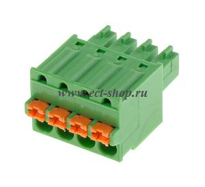 шаг: 3.81мм, пров: 1.50мм.кв, 300V, 8A, розетка фронт. подкл., пружин. с кнопкой, 4 конт.