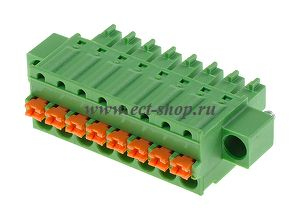 шаг: 3.81мм, пров: 1.50мм.кв, 300V, 8A, розетка фронт. подкл., пружин. с кнопкой, 8 конт., с винтами для фиксации разъёма