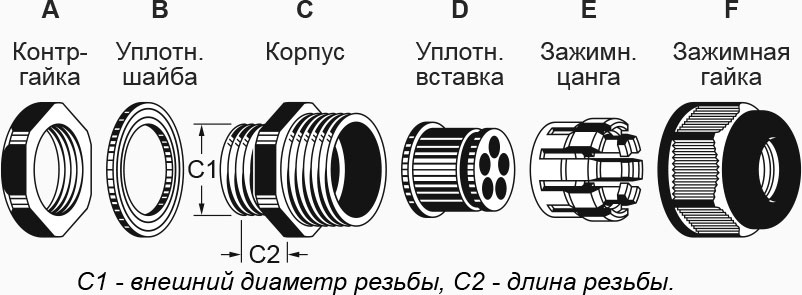 Каб.ввод 5 отв. IP68; резьба: G (PF) 3/4" х 12.5; каб. d: 6~4.6 мм; приб. отв. d: 26.5~26.8 мм; цанга: разъемная; раб. T: -40C ~ +100C(+120C); мат.: A,C,E,F - полиамид (PA66 UL94V-2) и B,D - вак. рез. (EPDM NBR); цвет: черный