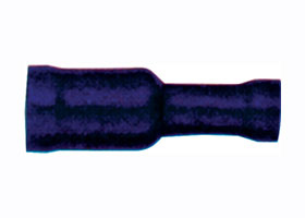 Изолированный кабельный круглый штыревой наконечник мама под обжим для проводов. Мат.: латунь. W = 4.9 mm, F = 7.0 mm, L = 24.5 mm, B = 10.5 mm, D = 4.5 mm, T = 0.4 mm, C = 2.3 mm;. Под провода: 1.5 - 2.5 мм.кв. Цвет синий. MAX 75C, 600B