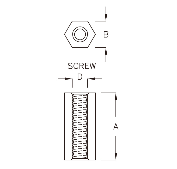 Пластиковая шестигранная межплатная стойка. Внутренняя резьба 3.0 мм. A=9.0мм, В=5.5мм. Материал: нейлон 66 UL94-V2, цвет: натуральный