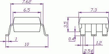 Корпус SMD-6, один нормально открытый контакт, 400В, 130мА, Viso=5000В. Альтернатива: PANASONIC/NAiS - AQV210, AQV214; RENESAS/NEC - PS7341-1A; OMRON - G3VM-351B, G3VM-401B; CP Clare/IXYS - LCA100, PLA110; TOSHIBA - TLP597G, TLP597GA; BROADCOM/AVAGO - ASSR-4119-001E.