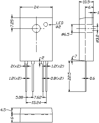 Однофазное твердотельное реле переменного тока с управлением постоянным током. Управление 5...12 VDC, выход: ток до 5 А, напряжение 50...280 VAC, контроль перехода через ноль, монтаж - пайка.