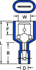 Nema tab 0.8x6.35. Полностью изолированный кабельный штыревой плоский наконечник Faston папа под обжим для проводов; Сеч.провода: 0.5-1.5 мм2; W = 6.35 мм, F = 7.7 мм, L = 24.0 мм, B = 11.0 мм, D = 4.0 мм, Т = 0.4 мм. С = 1.7 мм. мат.: луженая латунь. изоляция нейлон. Цвет красный. MAX 105C, 300B