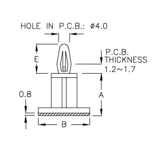 Держатель печатной платы на самоклеющейся 3М площадке 18х18 мм. А=22.2мм, E=9.6мм. Материал: нейлон 66 UL94-V2, цвет: натуральный