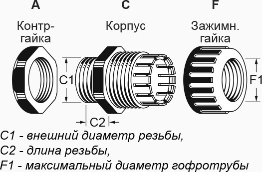 Вводная муфта для гофрированной трубы AVC N-FN1703-18G, 18 мм