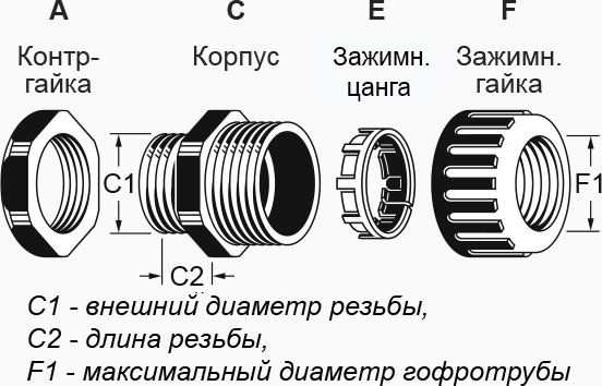 Фитинг для гофры (NGN-22B) 3/4" и (NFE-06B) 3/4", резьба PG 21, цвет: черный, t(-40 +100), IP68, RoHS