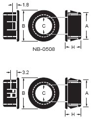 Втулка изолирующая, рассеченная. Материал: полиамид 66. Цвет: черный. Установочное отверстие: 12.7 мм. Для стенки толщиной до 3.2 мм. A = 12.7 mm, B = 14.1 mm, C = 8.7 mm, H = 10.1 mm.