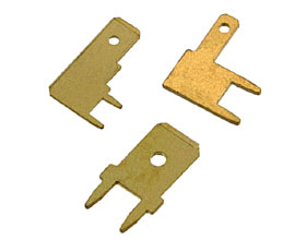 Nema tab 0.8x2.8. Клемма плоская Faston ножевая неизолированная угловая на плату "папа". W = 6.3 мм, L = 13.3 мм, материал: латунь