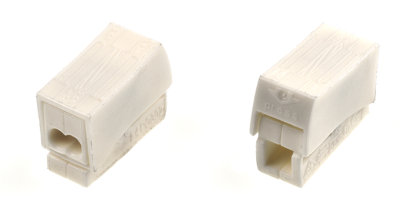 Колодка СМК для подключения светильников. 2 контакта Материал: РА66 UL94-V2. t= до 105C. Использование до 600В для проводки в зданиях и до 1000В в освещении. Компактный размер, многократное использование. Сечение провода подключения к сети: 0,75 - 2,5 мм.кв Сечение провода подключения к светильнику:0,5 - 2,5 мм2 Аналог Wago 224-112