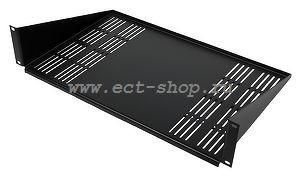 Сделано в России. Полка консольная стационарная 19"; 2U. глубина 280 мм; с вентиляционными отверстиями; материал: сталь; габ. размеры: 482.20(445.00) x 280.00 x 88.00 мм; толщина металла 1.5 мм; цвет: черный (RAL9005). Максимальная нагрузка 20 кг.