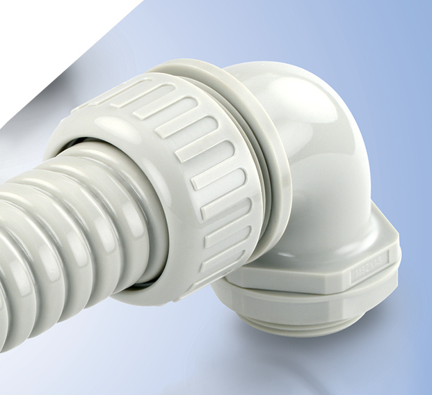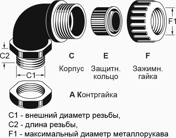 Фитинг угловой 90 град. для мет.гофры S-J10B(G) 1 1/4", резьба M40 X 1.5, C2=20, цвет: серый, t(-40 +100), RoHS