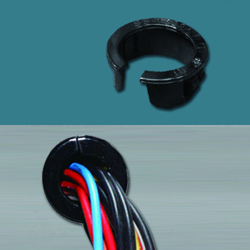 Втулка изолирующая, рассеченная. Материал: полиамид 66. Цвет: черный. Установочное отверстие: 19.0 мм. Для стенки толщиной 1.2~3.3мм. A =20.6 мм, B=14.4 мм, С=11.0мм