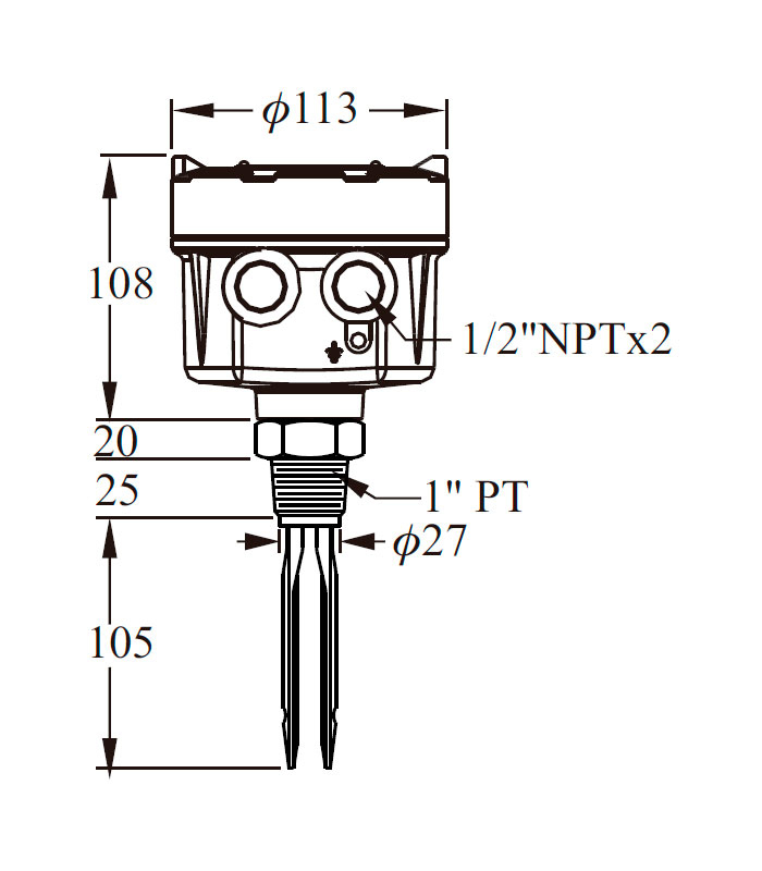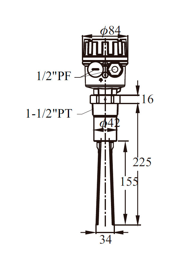 Датчик уровня виброзондовый. Корпус выполнен из алюминия. IP66/67. Питание 19-253VAC/VDC, 50/60 Hz, выход 2 реле 6A 28VDC/250VAC, монтаж резьба 1 1/2"(40A) PT, длина камертона 155 мм, материал SUS316. температура -40...+85С. Спецификация по запросу.