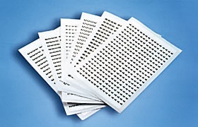 Самоклеющиеся кабельные маркеры символ "+". длина 20 мм; ширина 6 мм; материал.: ткань на виниловой основе; цвет: белый; номинал: черный. на листе 80 шт.
