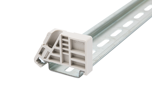 Концевой стопор - ограничитель SS11 на Дин рейку 35 мм. Дополнительная фиксация винтом. Размеры: 45,5х30,7(31,5)х8,0 мм