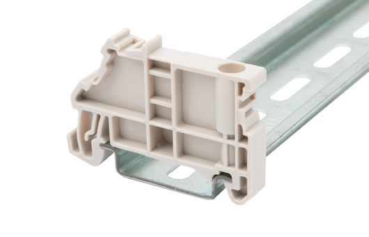 Концевой стопор - ограничитель SS2N на Дин рейку 35 мм. Размеры: 49,3х 35,3 мм