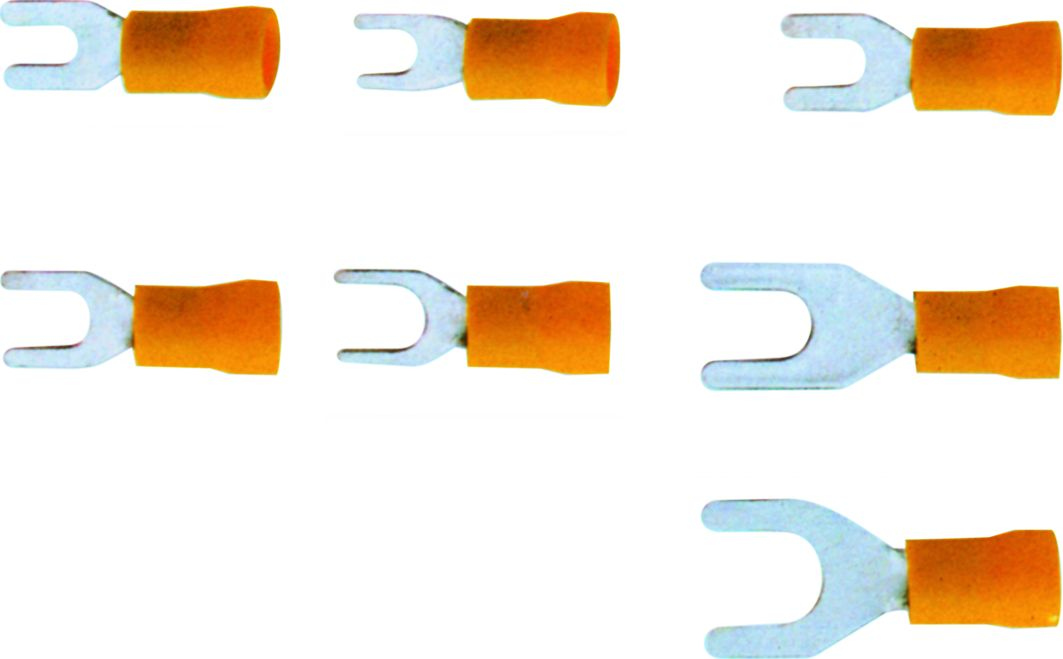 Клемма вилка тип "U" изолированная. Цвет желтый. на провод 4.0 - 6.0 мм.кв, винт 6 мм. Материал: медь. Изоляция винил. До 50А. d2 = 6.4 mm, W = 12 mm, F = 12 mm, L = 31.5 mm, E = 13 mm, D = 6.4 mm, d1 = 3.4 mm, T = 1.0 mm. Max 105C, 600B