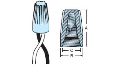 Колпачок соединительный - скрутка. Материал: Термопластик (UL94V-2). t=105C. U=300B . А=15,2 мм; В=8,6 мм; С=6,7 мм.