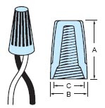 Колпачок соединительный - скрутка. Без пружины. Материал: Термопластик (UL94V-2). t=105C. U=300B. А=17,2 мм; В=10 мм; С=7,9 мм.
